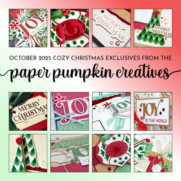 The October 2025 “Cozy Christmas” Paper Pumpkin Creatives Tutorial Bundle contains: